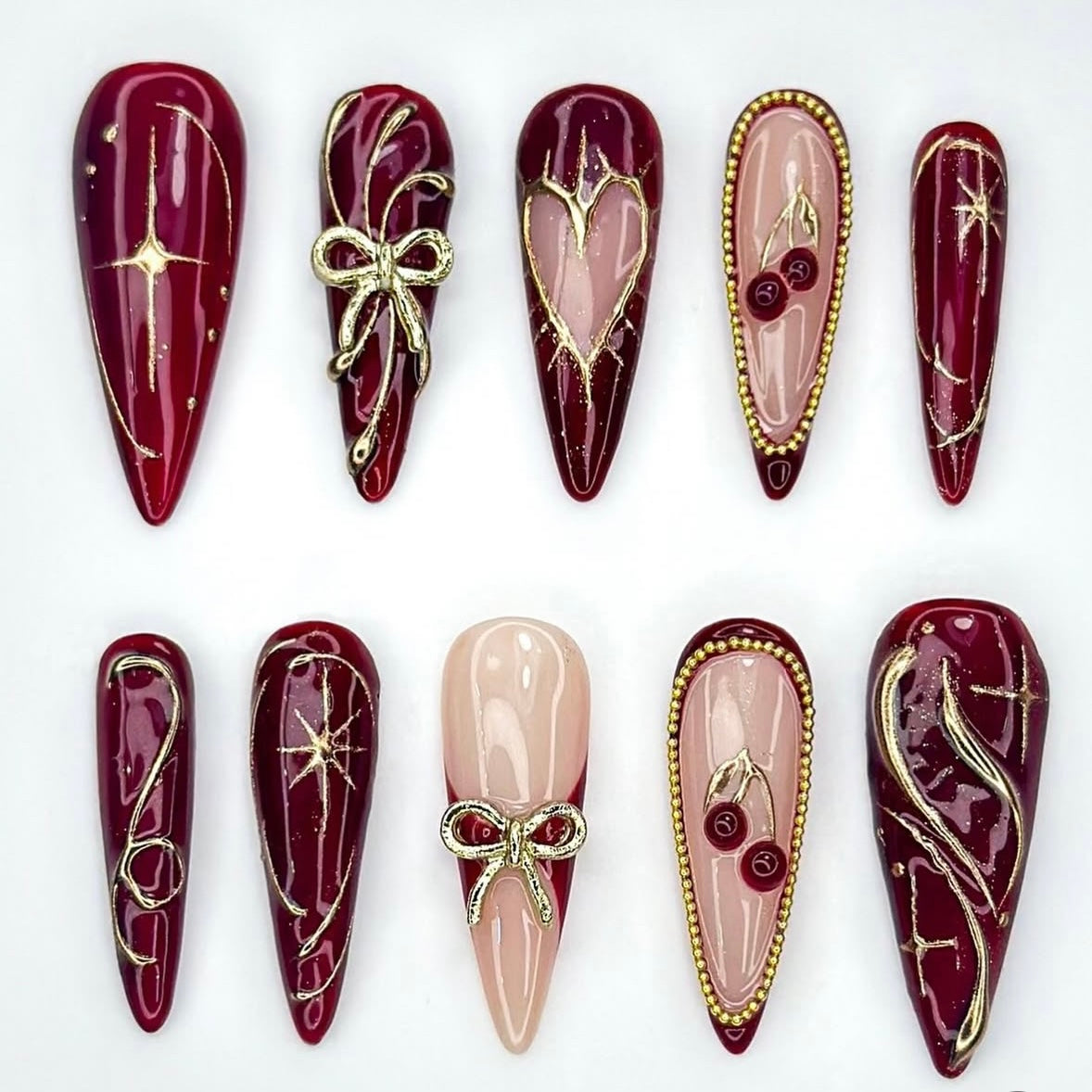 Soft amber tones meet delicate bow and cherry accents — a sweet twist on cozy autumn vibes 🍒🎀✨ Handcrafted to bring warmth and charm to every look, it’s your go-to set for pumpkin lattes, knitted sweaters, and golden afternoons. Let your nails whisper fall romance in the softest way.