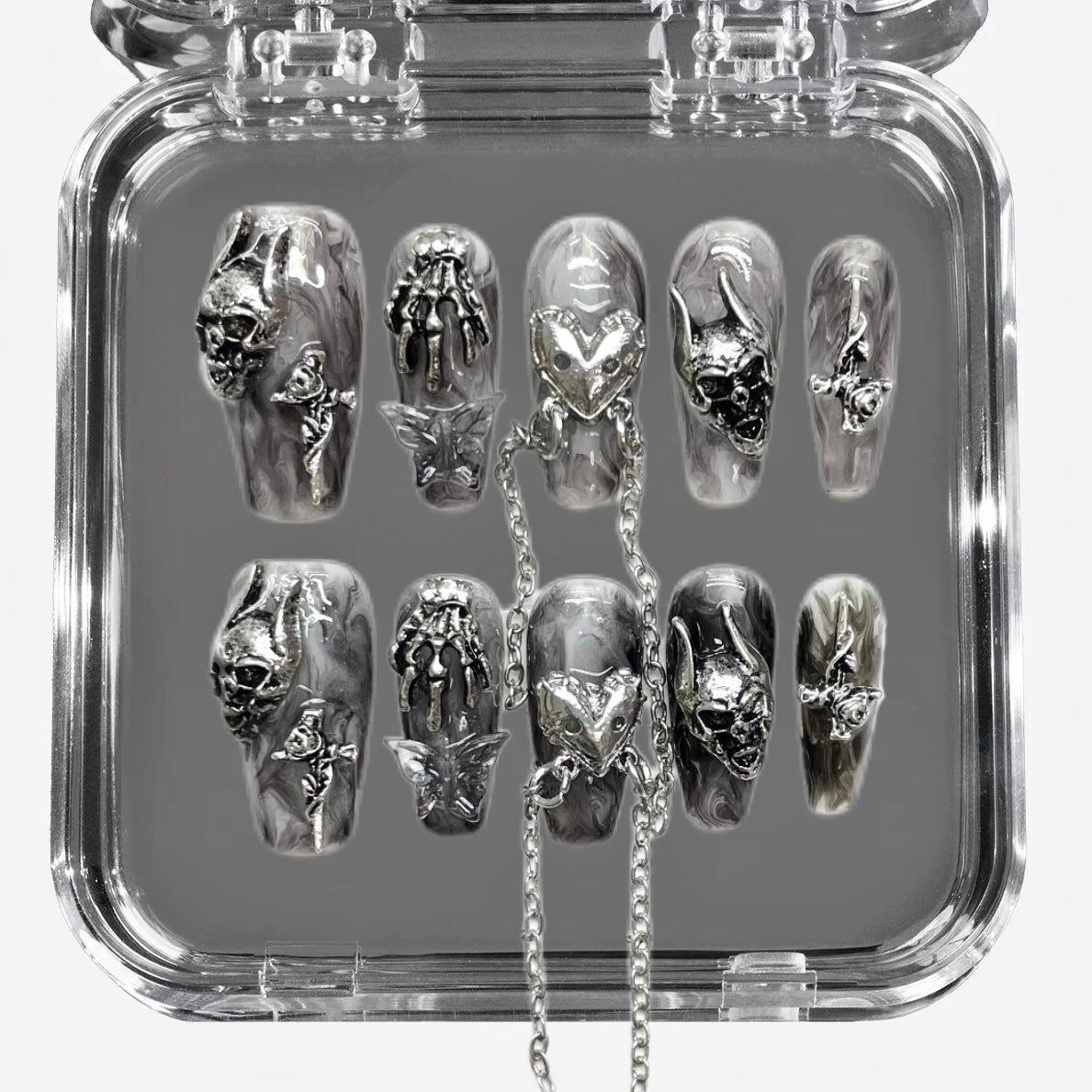 Unleash your dark allure with the Demon’s Claw press-on nails. Featuring bold, razor-sharp silhouettes and deep, mysterious hues, this design embodies power, temptation, and edge. Perfect for Halloween nights, gothic fashion statements, or anyone who dares to stand out with a fearless, dramatic style. Easy to apply and comfortable to wear, these nails let you embrace your inner demon with confidence and flair.