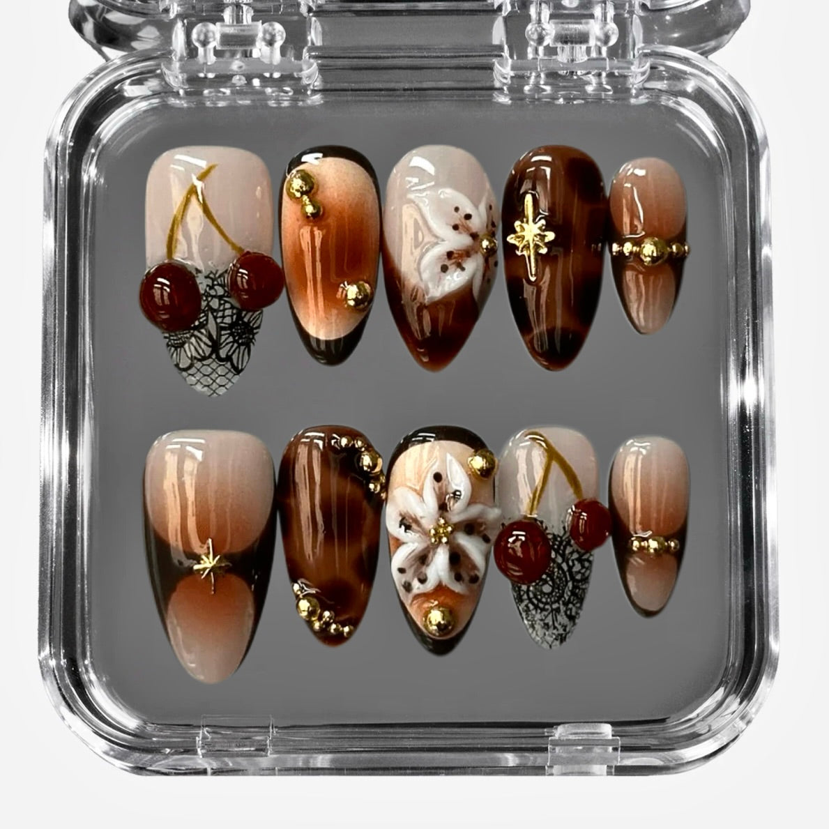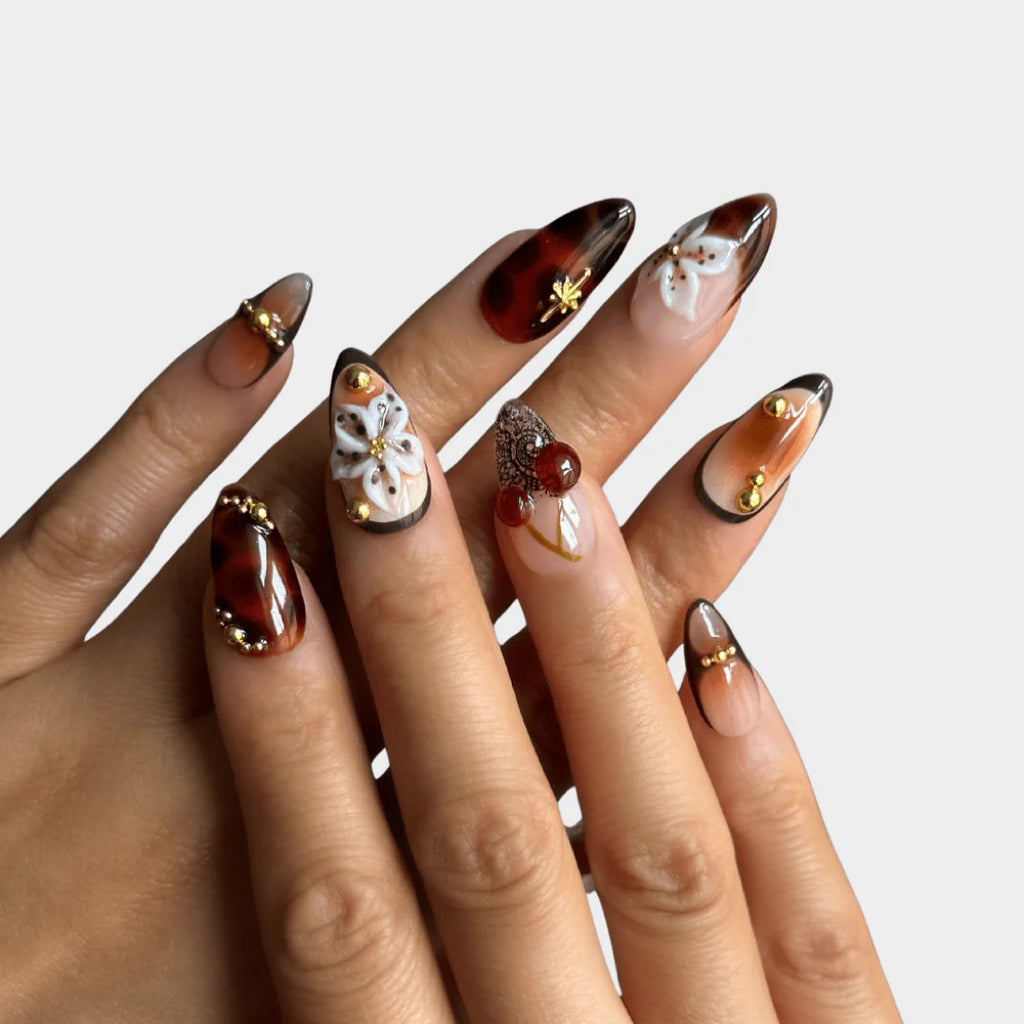 Wrap your nails in the richness of Mood — a deep, golden-infused brown that radiates dark feminine energy for nights out or elevated everyday style. Handmade and reusable, it lasts up to weeks with proper application.