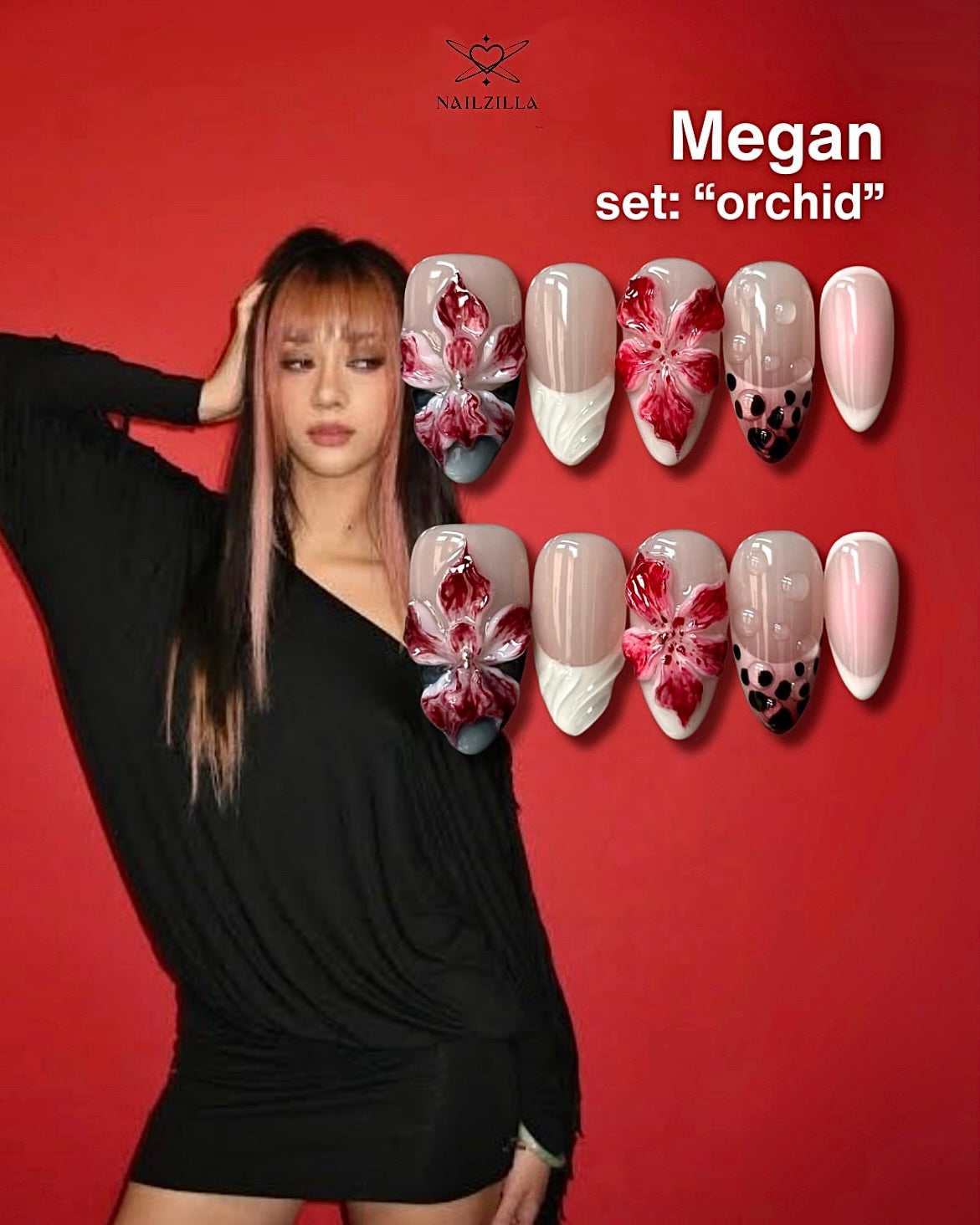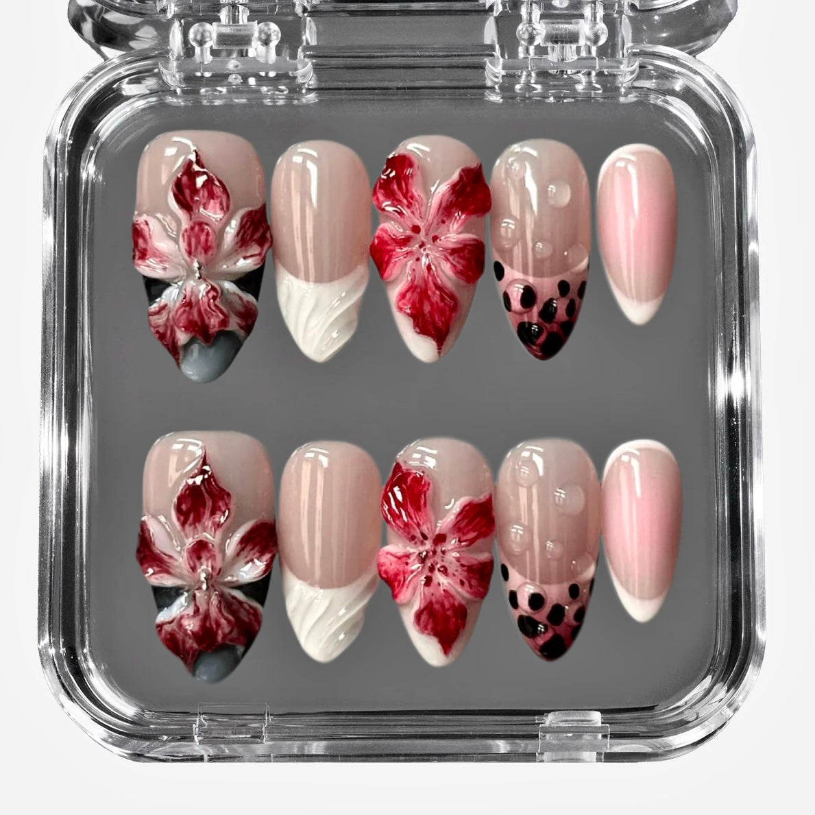 Orchid brings floral sophistication with delicate details and graceful hues. This set embodies refined glamour—crafted by hand, designed for lasting wear, and ready to transform your manicure into an elegant statement.